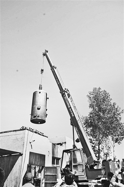 4月28日,邯郸市燃煤锅炉和“小散乱污”企业集中整治专项行动启动,全市共淘汰燃煤锅炉95台154蒸吨,取缔关闭“小散乱污”工业企业104家。图为在启动仪式现场,邯郸市经济技术开发区尚壁镇农村信用社的一台6蒸吨的燃煤锅炉被迅速拆除。
